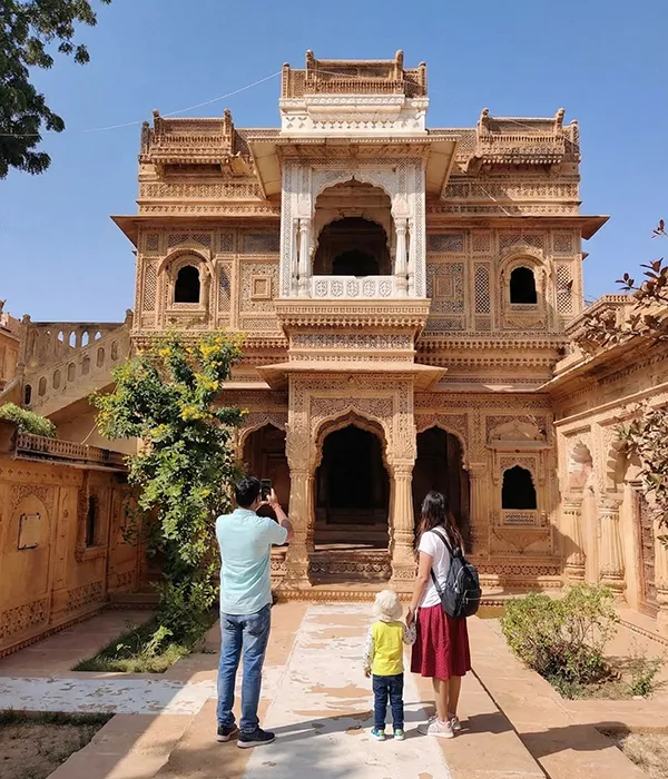 The grand havelis of the city reveal stories of prosperous traders and royal patrons through detailed craftsmanship. Designed in Rajput and Indo-Mughal styles, these mansions feature delicate carvings, balconies, and decorated interiors. Landmarks like Patwon Ki Haveli, Nathmal Ki Haveli, and Salim Singh Ki Haveli now serve as heritage museums welcoming visitors.