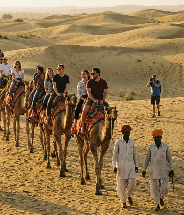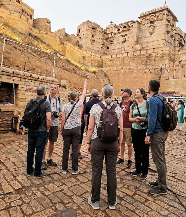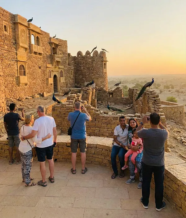 Constructed in 1156 AD by Rawal Jaisal, this iconic fort remains one of the world’s few “living forts,” with thousands of residents still inside its walls. Narrow lanes, ornate temples, and traditional homes create a timeless atmosphere. Built from yellow sandstone, the fort reflects golden hues by day and warm amber shades by sunset, standing in harmony with the surrounding desert.