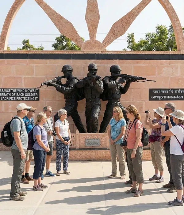 The revered Tanot Mata Temple stands as a symbol of faith and resilience, maintained by border forces and linked to historic wartime events. Nearby, Longewala preserves memories of heroic defence through its memorials and exhibits, honoring the spirit of national pride.
